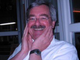 At 9 PM, Tom called and told us to drive to his house which is only two miles away on Herzogstrasse. The new GPS is graphically better but with the same female voice. She took us right there and Tom met us to lead up the 4 flight of stairs to his unit. We got to me his lovely wife of 33 years, Tony. We shared some fabulous red wines from Germany and Sardinia. Tom had not realized that we had not eaten dinner yet so his daughter Theresa (who is a senior in medical school) ordered us some pizza from the place down the street, Luna Rosa. It was pretty good (crust tasted like a good pretzel), but even better was the congenial conversation we had until one in the morning covering many topics, some of which were about cataract surgery and traveling. Tom is seriously committed to the claim that he invented capsulorrhexis before Calvin Fercho of Fargo, ND. I am going to look into this more. If he was first, he deserves the credit. We look forward to seeing them in Lisbon in September.