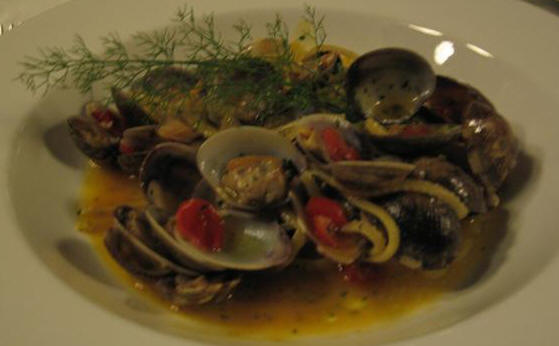 We had some Prosecco and vegetable salad, then Marcia had a smoked salmon (lox) concoction while I had linguini vongole which was excellent. We all had a veal chop Milanese, followed by creme brule and "vin santo" for Marcia and ananas and a cappuccino for me.