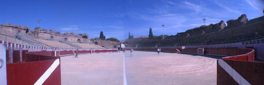 Then I came to a gate with a military truck sitting in the center of the entrance. A couple pushing a baby carriage were exiting by going past the truck - I noticed that they had cameras. So I just ambled nonchalantly passed the truck saying "bon jour" to the military driver and walked into the center of the arena and took this photo and stitched it later. Amazing what you can see if you just don't accept NO the first time you hear it.