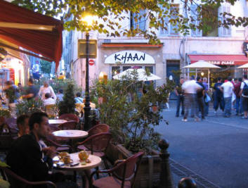 Mirabeau is a wide long street and at one end is the statue of an ancient king and at the other is a huge fountain in the center of a traffic circle. All along the street are many places to dine outside. We even found France's answer to McDonalds, called the Quick Burger. We finally went off Mirabeau and explored some of the side streets where there were more restaurants.