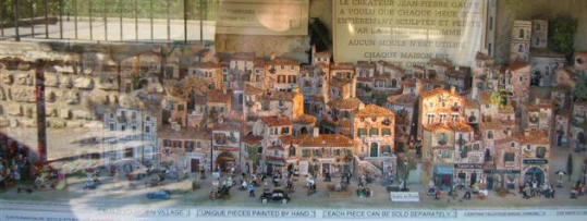 In the upper right you can see the flag on the ruins of the castle on the hill above the town. It was the property of the Bishops of Cavaillon. As you head for the Sorgue Source, there are many vendors selling all sorts of things for the French tourists. They must be especially fond of cicadas (center & right).