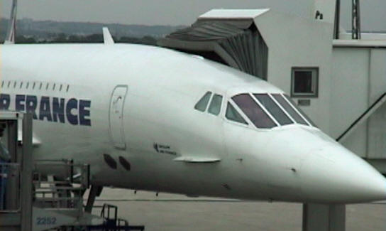 [As an aside, a little on the fateful first-time ever Concorde Crash which occurred on July 25, 2000; three years and four months later. Below left is a photo of the Concorde in flames as it was taking off from De Gaulle Airport. It was carrying a German tour group. Everyone perished.