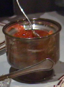 Tania showed us how to do it. You spoon the caviar onto the crepe and then you fold and roll it up. You can cut it or pick the whole roll up and eat it.