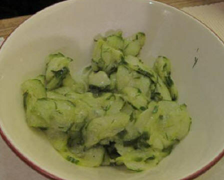 Marcia had cucumber salad (below left) then her favorite, wienerschnitzle with berry sauce (below right) and hashed potatoes (above right.)