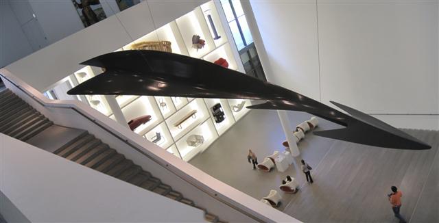You are drawn to walk down to the lower level to see the design exhibit (below.)