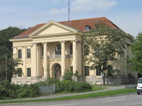 The Haus der Kunst (House of Art) [1 Prinzregentenstra�e] was constructed from 1934-7 by the architect Paul Ludwig Troost, as the Third Reich's first monumental structure of Nazi architecture and as Nazi propaganda. The "Tag der deutschen Kunst" ("Day of German Art") celebration showing Adolf Hitler, Hermann G�ring, Joseph Goebbels, Heinrich Himmler, Albert Speer, Robert Ley, Reinhard Heydrich is available on VHS and DVD. Below is a winter time photo I found which shows the columns of the building since the tree leaves don't cover them up.