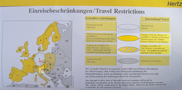 Wow, we are back to what I noted months ago at home with the original contract. We have a drop off in Venice, Italy but it is forbidden to drive the car in Italy. Does this make any sense?