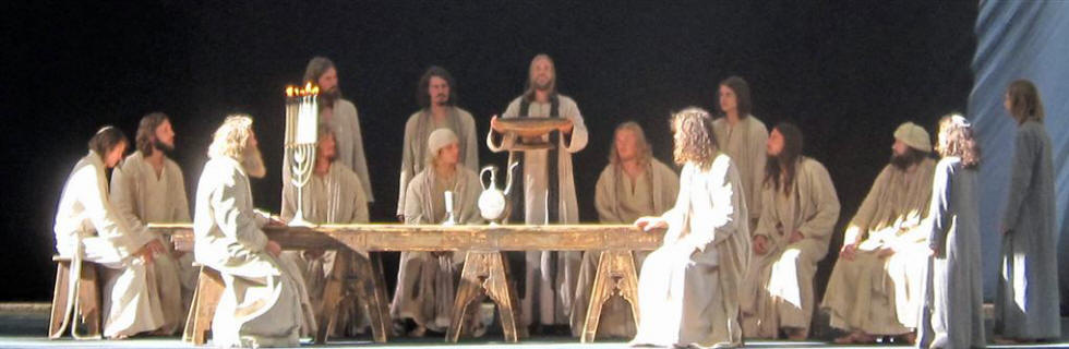 Here is again is the opening scene in panorama. The actor playing Jesus is on the far left (white robe.)