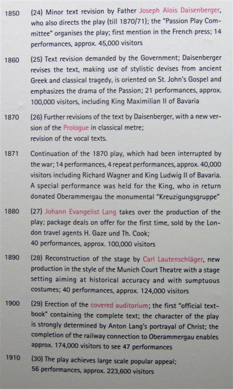 When I go through museums, I really don't have the time and the patience to stand there reading all the text they display. I take a photo of it and read it later at my leisure. Here is the complete history of this Passion Play. Just scroll down, if not interesting to you. Here is from 1633 to 1840.