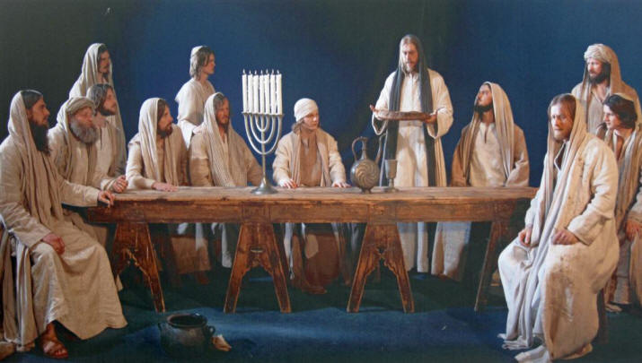 I didn't take pictures of every scene but I had to get the Last Supper; first the breaking of the bread (they used a very large flat loaf) ...