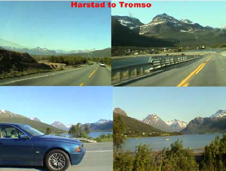It was rather warm outside and inside but she settled for inside. She had a bacon cheeseburger which she said wasn�t too bad. I worked a little on the computer and then we left and I drove north the remaining 86 miles arriving in Troms� at 7:15. The scenery was also quite spectacular along this run. I got some shots of the speed radar cameras (below right) that are out to catch us. We are 186 miles north of the Arctic Circle and north of Alaska which I didn�t believe until I looked at a globe the next day.