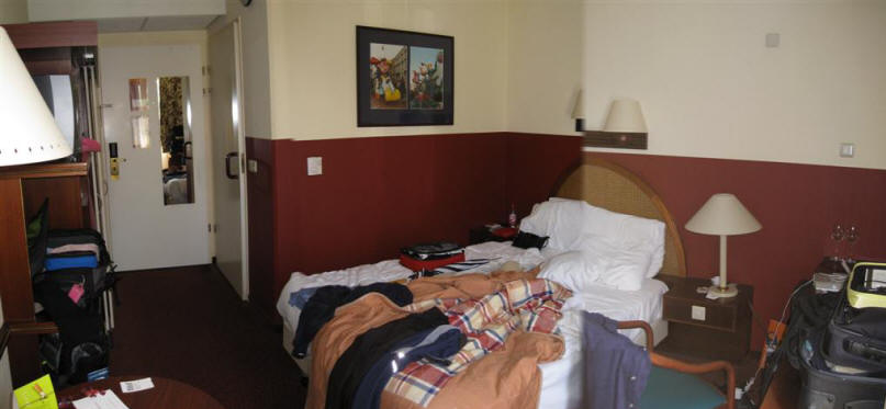 At 3:00 PM I went upstairs and Marcia and I packed up and carted our bags out. As you can see, our room was fairly spacious.