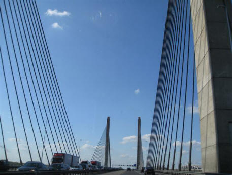 As we were driving farther out of town, I got this shot of more modern Dutch housing architecture. We had to cross this very nice bridge on our way. Here is entering the bridge...