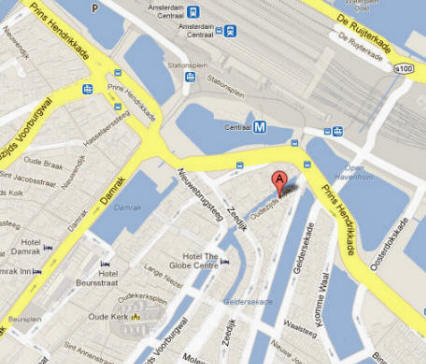 map, you can see the church I am heading for, De Krijtberg on the left bank of