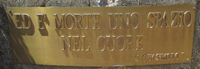 In front of the church a little down the hill, was an unusual memorial (above) with the dedication "Ed e' Morte uno Spazio nel Cuore" ["And is Death a Space in the Heart"] a quote from S. Quasimodo.