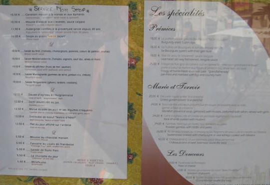 We ordered a bottle of local vin, 2003 C�tes du Rh�ne, Domaine Le Malaven and I had L'escargot which was very good while Marcia had auberjin c tomato. Of course, we both had � a roast (r�ti) chicken with gratinated potatoes. It was all very good.