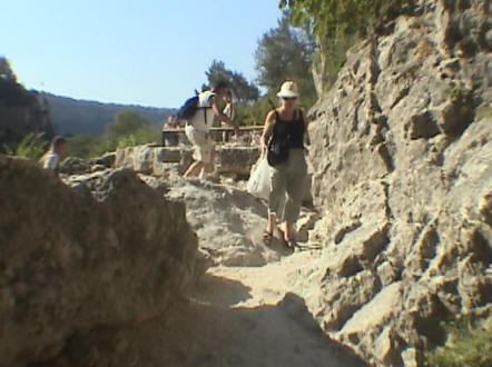 We arrived at the source which in the summer is only a deep pool of water. This pool is fed by multiple underground rivers draining the plains above. At least that is the theory. No one knows where the water is coming from even though many have tried to explore it including Jacques Cousteau. As we approached the tricky area, Marcia was a little wary and didn't go down to the edge. Its pretty slippery getting near the edge to look down at the pool.