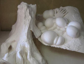 When you get inside you can see the men making the paper. They start with a metal tray with fine fenestrations. They dip it into the paper mulch and then pull it out shaking the water off. When it dries off they peel it off and lay it on the pile on the right.