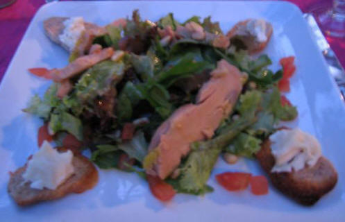 Marcia started out with melon and I had salade foies gras, which was excellent.