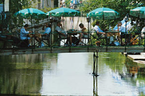 moss-covered wooden water wheels which they only turn on on Sundays. It was a very pretty town