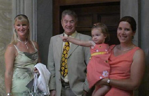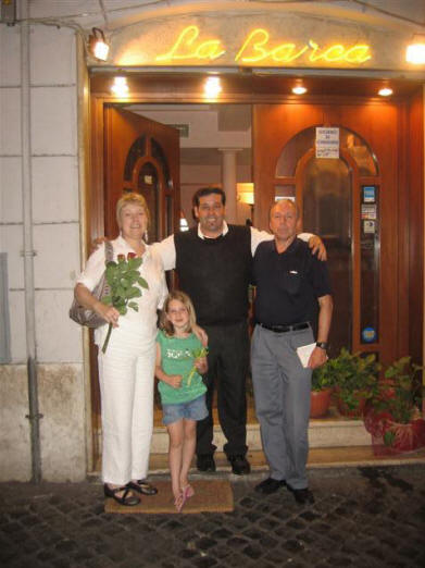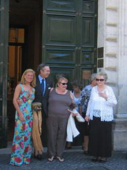 After the photos were done everyone had a chance to rest a little at their hotels. Anabella completely conked out. The wedding reception was scheduled for 8 PM at Ristorante "Scusate Il Retardo" ("Excuse me for being late," a most appropriate name for the Hoffer Family.) It is located in the Piazza della Rotunda where the Pantheon is sitting. It was built by Caesar's so-in-law Agrippa and is now a church where King Vittorio Emannuel is buried. Below right is Mary, Tyler and little Elena. Mary is Marcia's brother's daughter and Tyler is a Major in the U.S. Army; they are stationed now in Turkey.