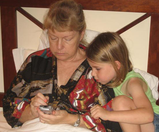 We walked back to the hotel and then Kaylin taught Nana how to play solitaire on the Palm phone.