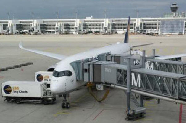 We landed in Munich at 3:45 AM EDT (9:45 AM CET) at Strauss Airport, Terminal 2 and got off the plane (below left). I was surprised by the sign announcing that my dollars would buy more here. It usually doesn't.