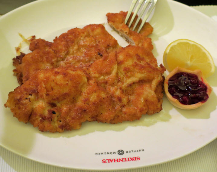 Marcia had some Gr�ner Veltliner white wine from lower Austria and this beautiful veal goulash which she likes along with a cucumber salad. The whole dinner came to �99.60 ($114) and our waiter, Patrick was great.