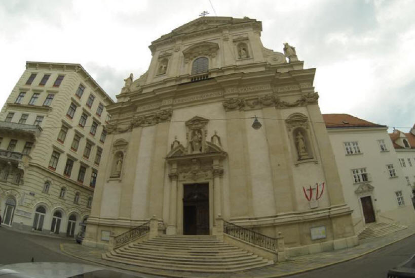 As I got to the corner of Predigergasse and Postgasse, I arrived at the Dominikanerkirche (Dominican Church of St. Maria Rotunda) [Postgasse 4, +43-1-512-4332] erected in 1631.