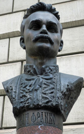 On the wall of the church is a plaque honoring Andrij Hnatyschyn, a Ukrainian composer and conductor who worked in this church from 1931-95 (wow, 64 years). On a marble column nearby, was this well-done bust of Iwan Franko (1856-1916), a Ukrainian writer and philosopher. I believe this is a Ukrainian orthodox church.