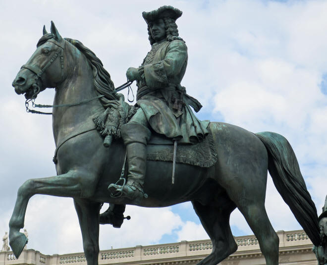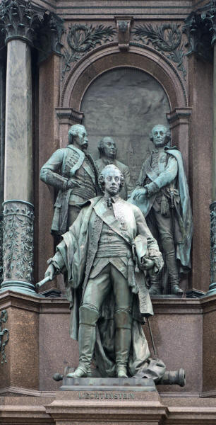 Back to the monument. Surrounding her are four equestrian statues. They are called the four "Paladins of the Empress". On the frontal view, they are Field Marshal Leopold Joseph von Daun (1705-66) (left) and Field Marshal Ernst Gideon von Laudon (1717-90) (right), whose last appointment was that of Commander-in-Chief of the armed forces of Austria (with their stock portraits).