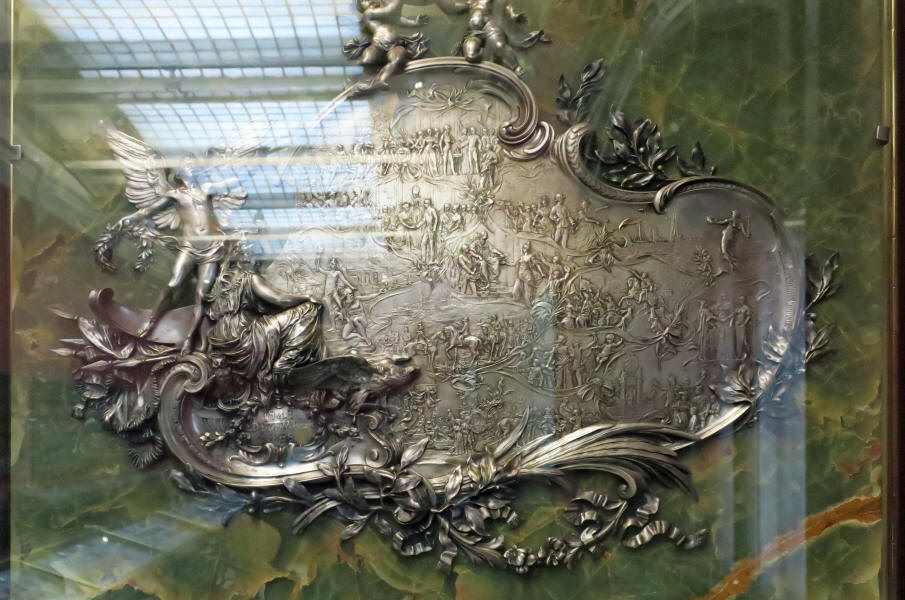 This room is a little smaller than VI was. Here are the paintings by the artist, I say "salvaged Warsaw", Berardo Bellotto (1721-80) who went by his famous uncle's name, Canaletto. He was active in Dresden, Vienna and Warsaw. Below is his "Vienna Viewed from the Belvedere Palace" from 1758-61.