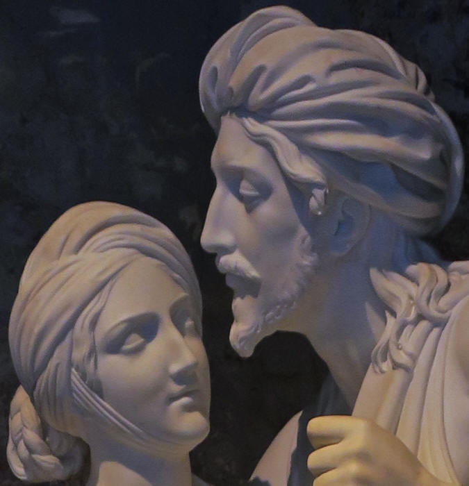 Stock photos above. Just before I entered the room, they had this poster display regarding the "Game of Thrones" which is interesting. It says "Das Gem�lde von Eis und Feuer" or "The Painting of Ice and Fire". I enlarged the section in English below. There was also this beautiful marble piece entitled "Jacob and Rachel at the Well" by Italian sculptor, Democrito Gandolfi (1797-1874) from Bologna (below right).