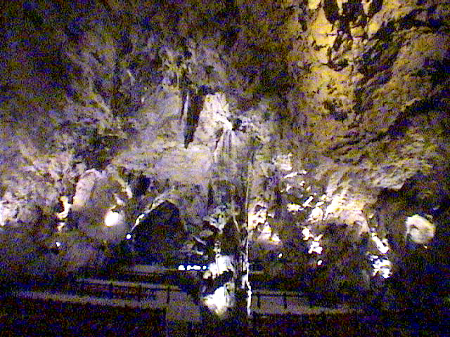 I sprang up early at 10:30 and by noon I headed out to conquer the Rock. I ran through the town to Casemates Square, exited the city gate, made a right at the BP station and all the way around the Rock to the other side. When I finally stopped and looked up at it, it was amazing. This huge white thing looming over me. It really was spectacular. After taking about a thousand 1000 photos, I headed back to town and joined Marcia for a cap at the same place as last night. I tried one at Casemates Square put it had a foot of whipped cream on it and I just wasn't in the mood, so I walked. Marcia and I walked the town and found the Internet cafe and sent off Chapter 33. It was like all of the internet cafes, very humid inside. We walk all the way back and found the taxi rank and bumped into Francis who offered us a tour for $50. We decided to take it rather than argue with him. It was actually very good. We climbed the side of the Rock itself and first reached St. Michael's Cave which was used as a hospital in WW II, now they have concerts in it. It was beautifully lit and worth the look. He then took us higher to where the Barbary tailless apes live. There are several colonies of these apes and they were believed to be brought here by the Moors. They exist nowhere else in all Europe and it is said that the British will leave when the last one dies. They take very good care of them, needless to say. We then went even higher for views of the whole island and to tour the Siege Tunnels, then back down past the Moorish Castle (now a prison) and the cable car to arrive at the very tip of Gibraltar to see the Shrine to Our Lady of Europe which has been there for over 500 years.