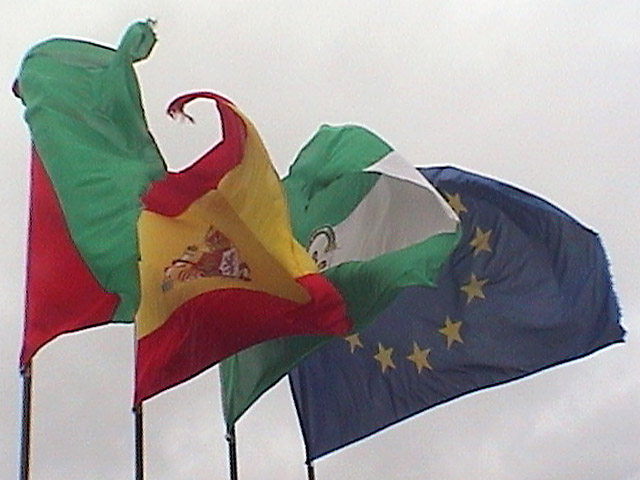 We walked back in the rain and the umbrella wasn't much help because all my clothes were soaked. My hair was dry though. When I got back to the room the only clothing that wasn't drenched was my underwear so I completely changed. I had CNN on and heard Bush's Saturday radio address. With the rain so heavy it was pleasant to sit with the computer in the lobby. The barman & I discovered we both like and use the same Papermate pen and because the ink ran out of mine, he gave me one of his. After a couple of hours, the rain stopped and the sun started shining. I thought it might be good to go to Mass on Saturday since we had so much to do in the morning. The hotel told me they had a 7:00 Mass at St. Cecilla (thay-thee-yah) but it was a walk way down the hill. When I get there people are throwing rice at the wedding couple and the church doors slam shut for the day. So I have to hike back up the hill. We then caught a cab to take us down this hill and then up the hill next to us to the Albaicin to view the sunset over the Alhambra. It was gorgeous and then he drove us to Restaurante Cunini in the old city near the Catedral. We had chipirones (fried baby cuttlefish) and Marcia had anglerfish while I enjoyed another San Jacobo. We then took a cab to the Sala Alhambra flamenco show which we had responsibly booked with the their hotel concierge. It is said that the best place to see flamenco is in Granada. The audience was a little bigger than in Seville. The tour buses were pouring people into this huge showroom and it was similar to going to a show in Vegas, crammed into long tables. A bottle of champagne was included in the ticket which finally arrived half way through the show. The performance was similar in format to what we had seen last time but they seemed more professional but maybe just a little too slick. The funny thing is that we think we liked the other one better even though there had been no audience. After the show they had a guy drive us back to the Alhambra Palace at no charge and he refused a tip. It was a very nice evening and we got to bed at 3AM.