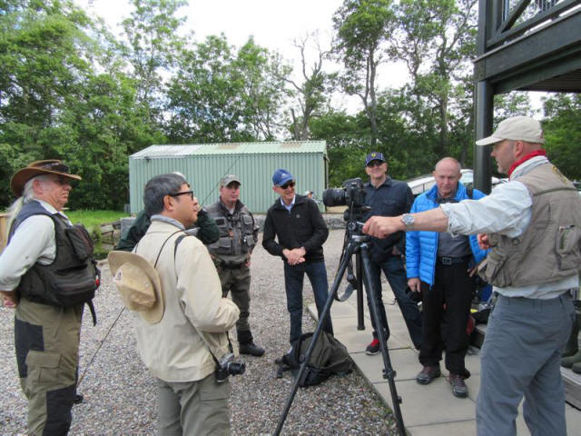 It took less than 30 minutes to make the 17 mile drive to get there. Perth is on the River Tay which gets pretty wide as it heads east towards Dundee. When we arrived we were taken to this lodge and introduced to our guides and then we posed for group pictures before getting into our fishing gear.