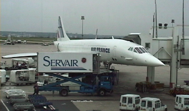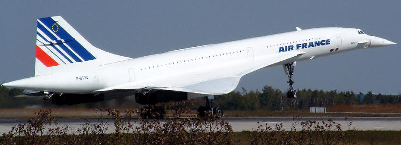 [As an aside, a little on the fateful first-time ever Concorde Crash which occurred on July 25, 2000; three years and four months later. Below left is a photo of the Concorde in flames as it was taking off from De Gaulle Airport. It was carrying a German tour group. Everyone perished.