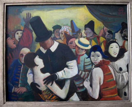 Above: "Woman with Mandolin" and "Landscape with Yellow Church Steeple"