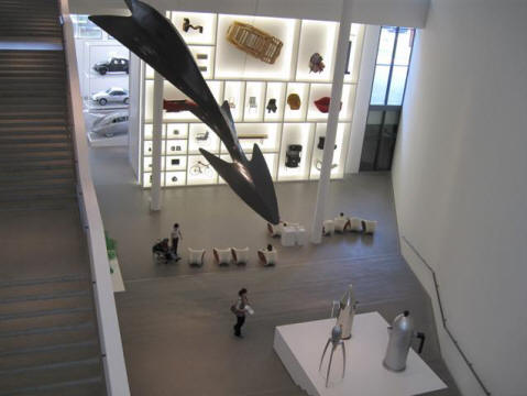 You are drawn to walk down to the lower level to see the design exhibit (below.)