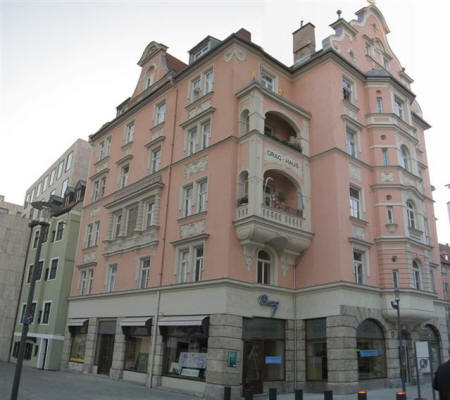 I then passed this building (below) whose ground floor houses a L�wenbr�u beer hall called L�we am Markt Gastst�tten (Lion on Market Pub) [4 Dreifaltigkeitsplatz, +49-8-922-4911.] It looks like a fun place but I never went in.