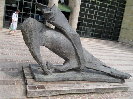 For compariso, on the left (below) is the Google map. This is the sculpture in the front by Marino Marini (1901-80) called "Miracolo" from 1959.