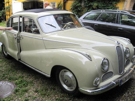 Above is the lunch area and their menu. Dr. Tom Neuhann arrived at 6:00 in his beautiful historic 1957 V8 BMW and he drove us to his house on Simssee (a small lake nearby.) The car is interesting; the doors open in opposite directions.