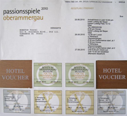 Background: I booked all this for the four of us in consultation with John. I first discovered you can only order tickets for the Oberammergau Passion Play through an American travel agency. I chose Nonstop Travel [833 111 Torrance Blvd, Torrance CA, 310-324-5500]