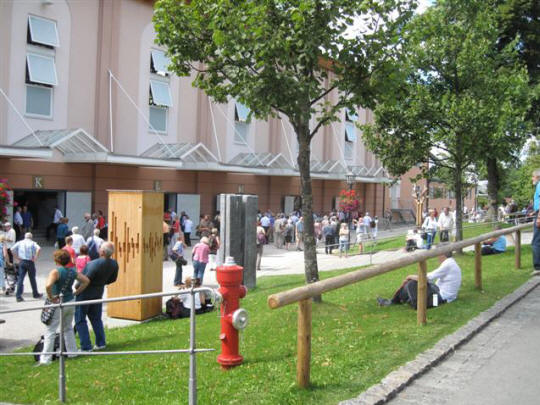 This set of tickets is really professionally produced. Below left are our two tickets to see the Play. We were given Gate (Tor) N, Row (Reihe) 7 and seats 101&2. On the right is our sheet of two tickets each for lunch and dinner as well as tickets to see the Oberammergau Museum. They had already removed our hotel vouchers. For the first time I discovered that the cost of the actual ticket to see the Play was �150 ($200) per person.