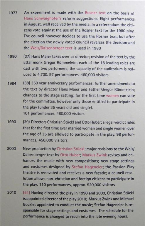 When I go through museums, I really don't have the time and the patience to stand there reading all the text they display. I take a photo of it and read it later at my leisure. Here is the complete history of this Passion Play. Just scroll down, if not interesting to you. Here is from 1633 to 1840.