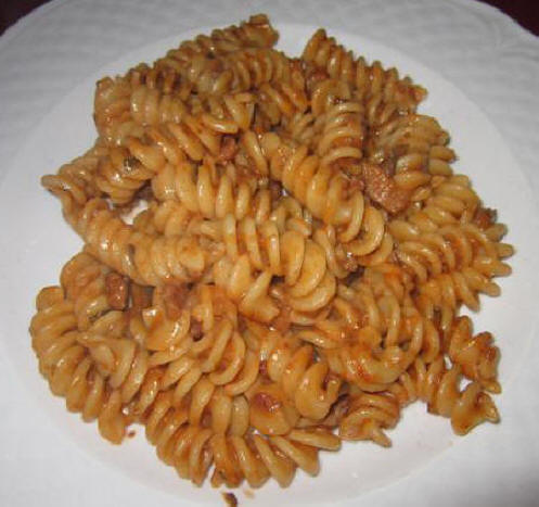 We were both served a primi of fusilli with meat sauce (below left) followed by a secondi of rabbit with olives, and a mixture of broccoli, cauliflower and carrots (below right.) This was the dinner for the night.