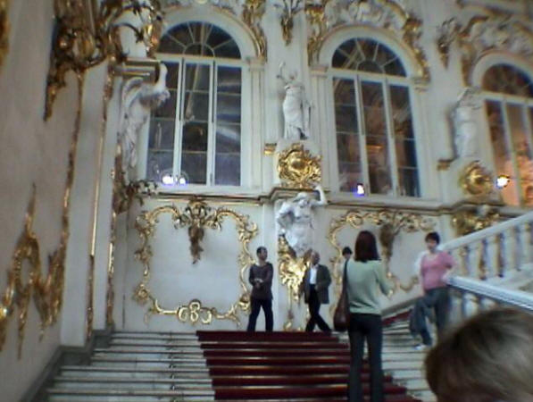 When I paid for our tickets, I also bought a camcorder permit allowing me to photograph anything I wanted. They give you a little sticker to put on your shirt so the guards ("Babushkas") know you are allowed to photograph. This is a sane and fair way to do it. I hand it to the Russians. If you want to photo; simply pay a small extra fee. I got a lot of Picasso works and those of many other famous Western artists. As usual, if you are not a fan of art, just slide past it all. But if you are slighlty interested in art, you will learn a lot. Here we go. To give an overall feel of this immense museum, I've included these beautiful stock photos (below) of some examples of the rooms.