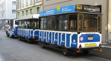 I then came across this cute little place, the Old Swiss House (below left.) It looked interesting enough for me to go in and check it out. They really were not open but a man came up to me and told me they would be open for dinner later. I made a reservation with him. I told him that I would be changing my clothes before I came back. Of course Luzern has a little train tour.