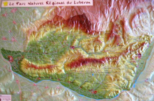 We are in an area called Le Parc Natural Regional du Lub�ron which covers 463 mi2 (120 K hectares) and is a limestone mountain range east (the Grand Lub�ron, with peaks as high as 4,000 ft) and west (the Petit Lub�ron).