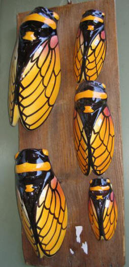 In the upper right you can see the flag on the ruins of the castle on the hill above the town. It was the property of the Bishops of Cavaillon. As you head for the Sorgue Source, there are many vendors selling all sorts of things for the French tourists. They must be especially fond of cicadas (center & right).